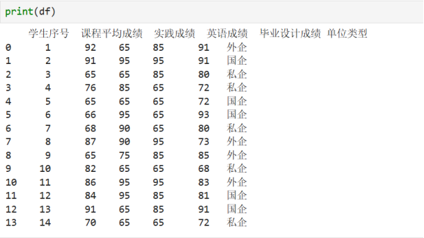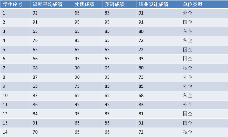 '毕业设计成绩': [91, 91, 80, 72, 72, 93, 80, 73, 85, 68, 83, 81, 91, 72],