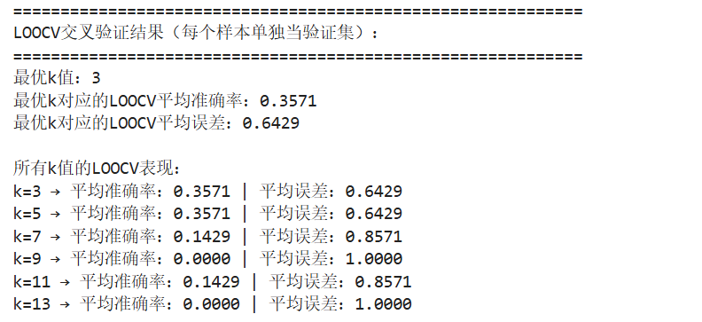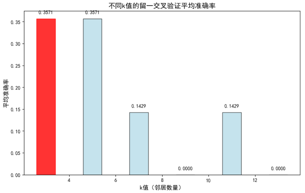 - 对每个待测试的 k 值,循环 N 次训练与验证,计算 N 次预测的平均准确率;