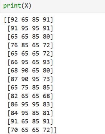 X=df[['课程平均成绩', '实践成绩', '英语成绩', '毕业设计成绩']].values