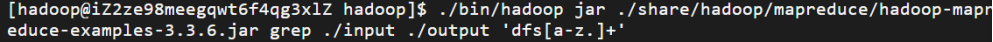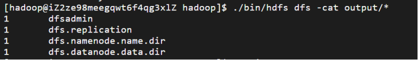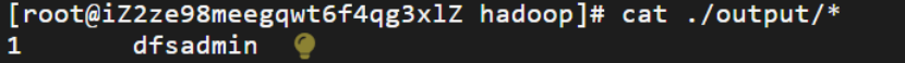 执行成功后如下所示,输出了作业的相关信息,输出的结果是符合正则的单词 dfsadmin 出现了1次