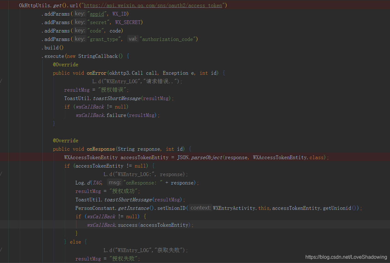 第一步,拉起微信登录,在WXEntryActivity的onResp回调中得到code