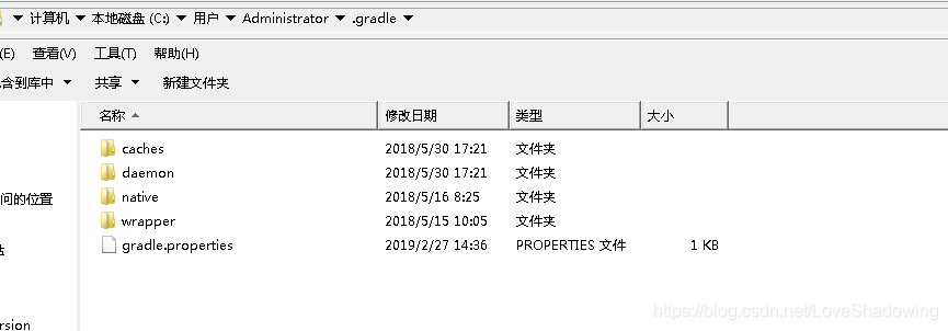 在操作系统当前用户的.gradle文件夹下:C:\Users\Administrator\.gradle 设置gradle.properties,若无就新增。