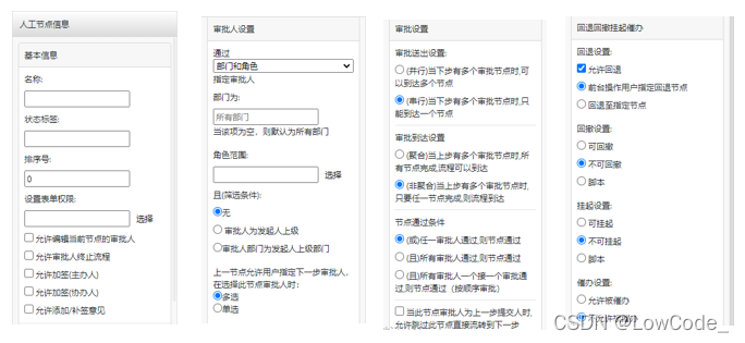 2. 该平台的流程引擎支持参数化配置审批动作,无需额外代码开发;流程引擎封装了国内常用审批动作、设置审批权限、会签、加签、补签、知会、催办、回撤等丰富的审批动作。