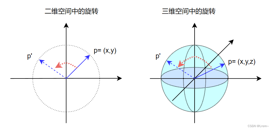 - 旋转的基本条件:模长相等,即 ∣ p ′ ∣ = ∣ p ∣ \bm{|{p'}|=|{p}|} ∣p′∣=∣p∣