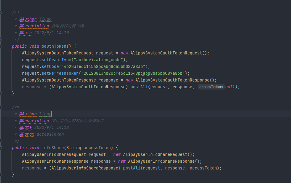 public AlipayResponse postAli(AlipayRequest request, AlipayResponse response, String accessToken) {