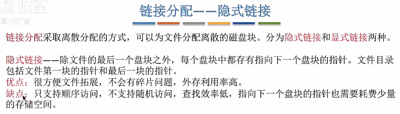 经过刚才的分析,我们知道了隐式链接的链接分配有这样的一些优点和缺点,这就是刚才得到的结论,这就不再赘述。