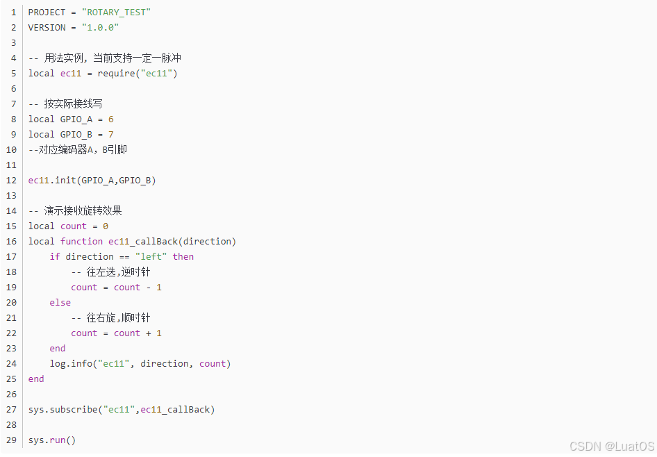 本文使用了更加通用的ec11.lua扩展例程库实现了编码器的功能。