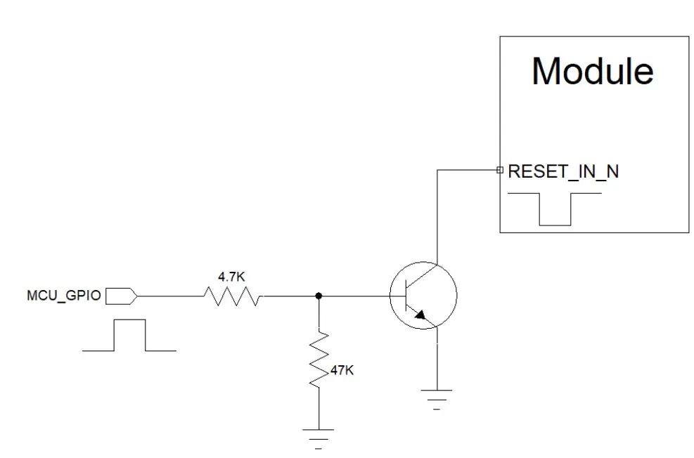 如若RESET_N管脚一直被外部拉低且不被释放,模组则一直处于复位状态,不能正常启动,因此复位管脚也要作为模组不启动的排查对象。