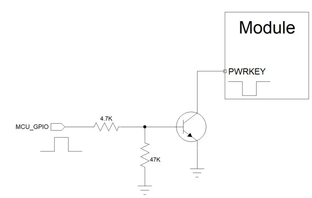 Air700ECQ/Air700EAQ/Air700EMQ模组不同于通常的MCU的上电开机,需要触发开机事件,也就是PWRKEY管脚拉低(拉低时间>1s),触发开机。
