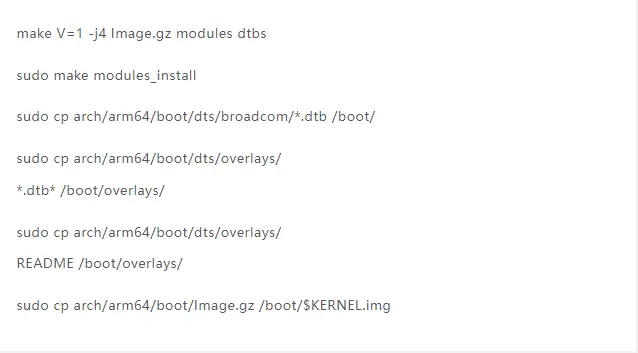 生成并安装内核、模组和设备树blob。此步骤可能需要很长时间,具体取决于所使用的树莓派模型。