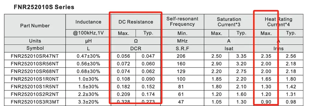 功率电感的选型除了关注感值外,还需注意下面的几个参数: