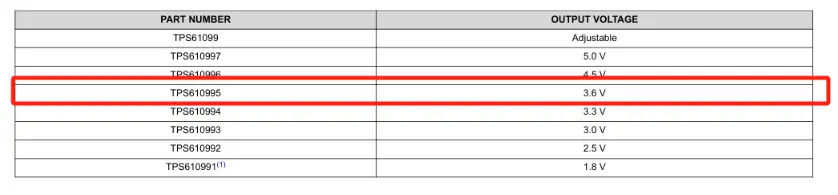 注意:TPS610995要选择固定升压版本,可以省掉外部的反馈分压电阻,能够最小化反馈分压上的静态电流。