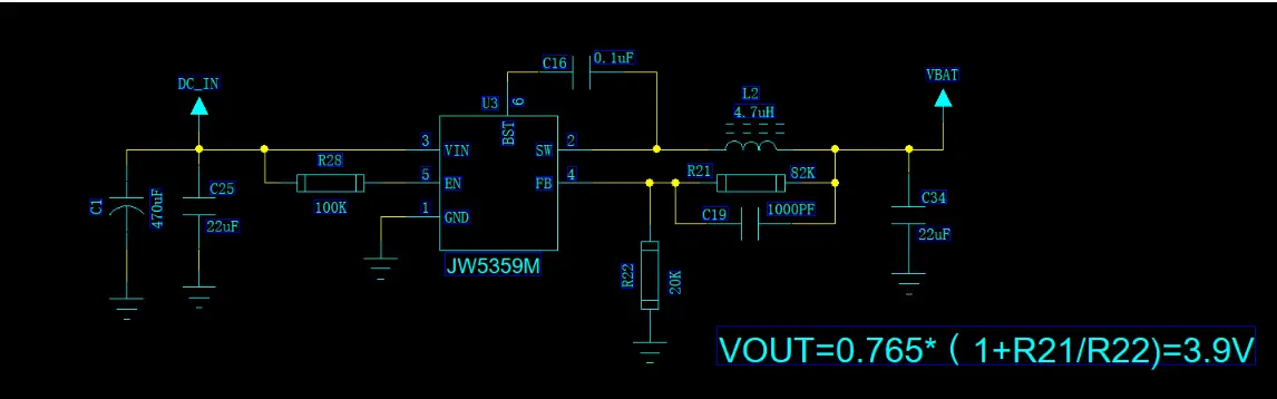 上图是以杰华特的JW5359M 开关电源举例,讲解各个部分的功能电路: