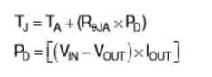 不少人选择LDO器件,只看器件的最大输出电流是否满足模块的要求电流,这种做法是错误的。LDO选型最重要的参数是热阻ϕ JA,表示芯片内部热结点到周围环境的热阻。通常芯片内部的结温的计算公式为: