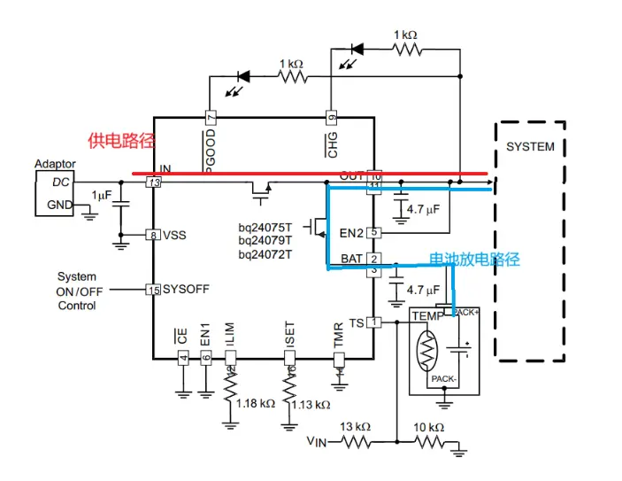 由于锂电池的充电特性,在频繁充放电的情况下会导致锂电池寿命下降,因此在外电长供电的应用场景下(比如4G网络摄像头,无线固话,常供电的电瓶车定位器等)建议做充电路径管理,即当外电供电时会切断电池与模块的供电连接,直接用外部电源给模块供电。(上图线性充电参考设计的TP4056就没有路径管理功能,这种情况下,不能在电池不在的情况下用充电口直接给模块供电)。