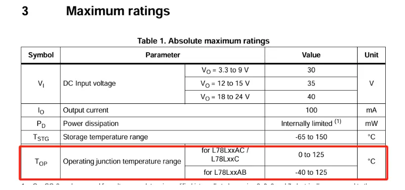 对于芯片结温Tj,通常规格书会给出当前芯片的最大允许的工作温度,比如如下: