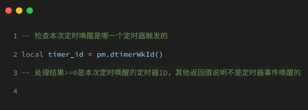 int型(处理结果 >=0 是本次定时唤醒的定时器ID,其他错误,说明不是定时唤醒的)。