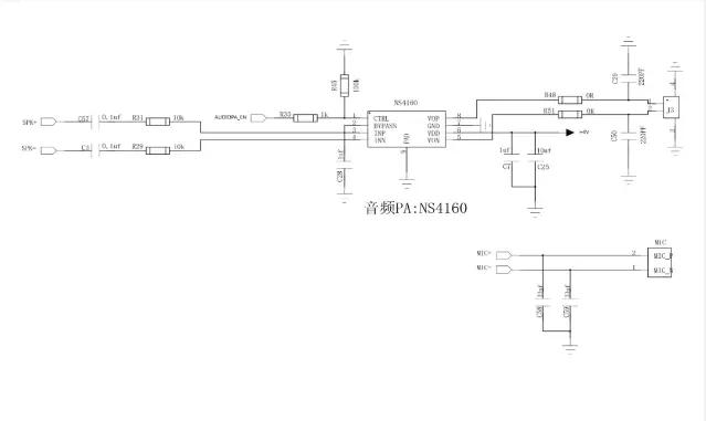 音频PA选用的是纳芯微NS4160,最高可驱动4Ω 3W的喇叭(5V供电时)。