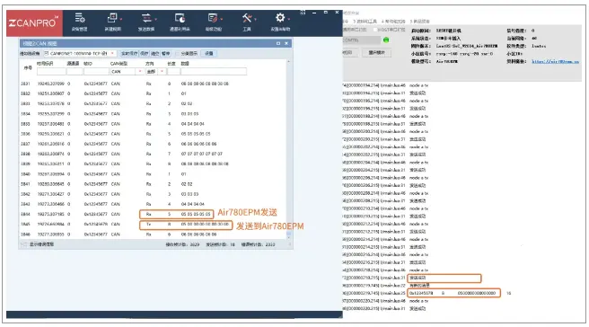 方式一:使用Air780EPM开发板和高速USB-CAN分析仪,进行数据收发。