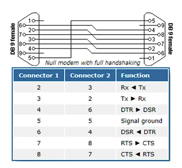 标准RS232串口连接方式如下图所示,特点是交叉连接: