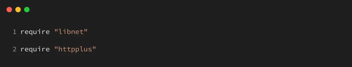 扩展库是Lua脚本文件写的库,需要在用户脚本中,使用require语句加载,例如libnet,httpplus等,加载方式如下: