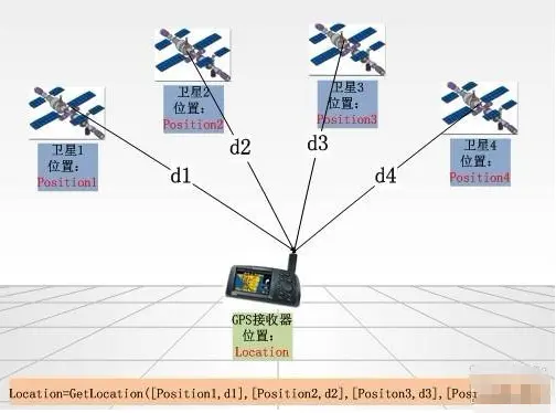 GPS 接收器通过与至少四颗卫星的信号进行交差定位,借助卫星轨道数据、时间戳和用户位置等信息,使用三角测量法计算出接收器的精确位置、速度和时间。