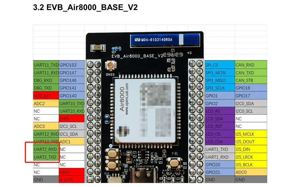 将设备组装好并连接 USB 数据线,将 TTL 转 USB 连接到 Air8000 的核心板的 uart2 上面。