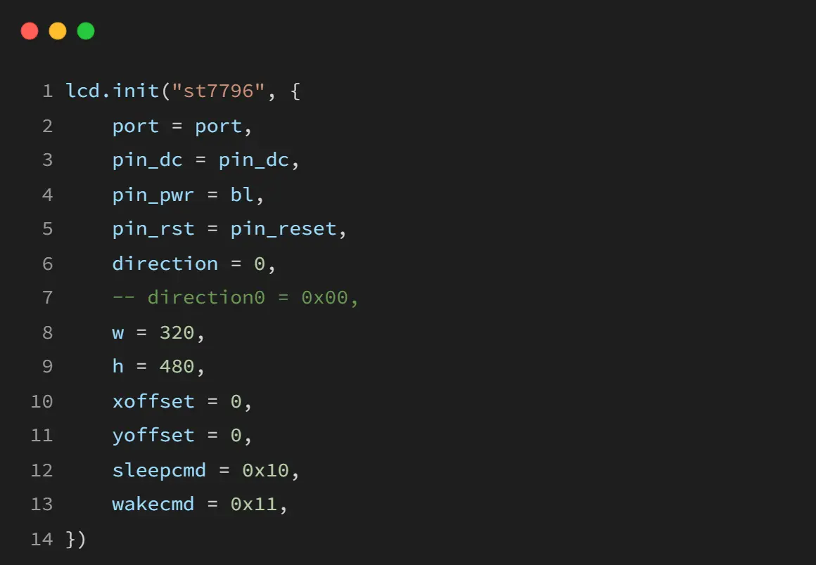 支持的IC:st7796,st7789,st7735,st7735v,st7735s,gc9a01,gc9106l,gc9306x,ili9486