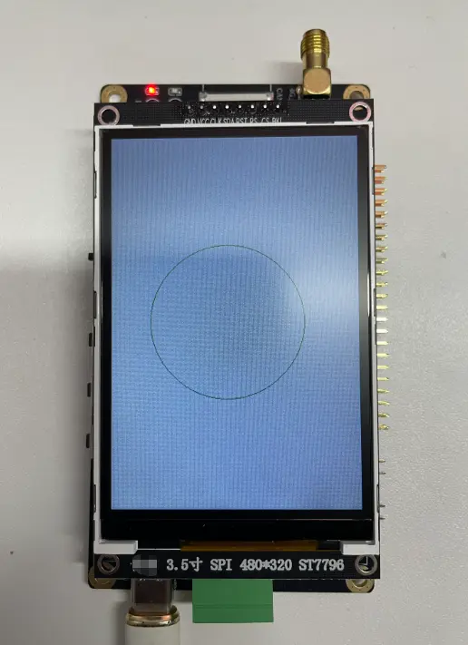 4.使用 Air8000 开发板 + 分辨率为 320*480 的 LCD 屏幕画圆,效果如下图所示: