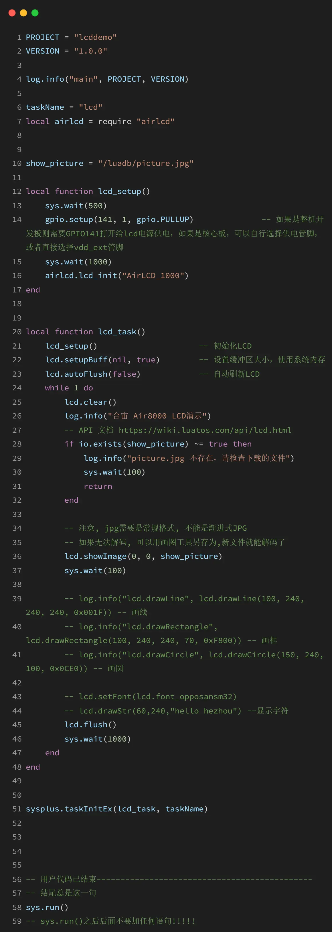 Air8000开发板的LCD屏幕是嵌入式项目中实现视觉交互的关键载体,如何高效利用它呈现图片、文字和图形,是开发者常关注的问题。本文将以Air8000开发板配套的LCD屏幕为实战平台,从驱动配置到代码实现,层层拆解图片显示、中英文渲染,以及画线、画框、画圆等图形绘制的核心技巧。无论是初学者还是进阶用户,都能从中获取实用的“实战秘籍”,快速掌握Air8000开发板LCD屏的内容绘制能力。