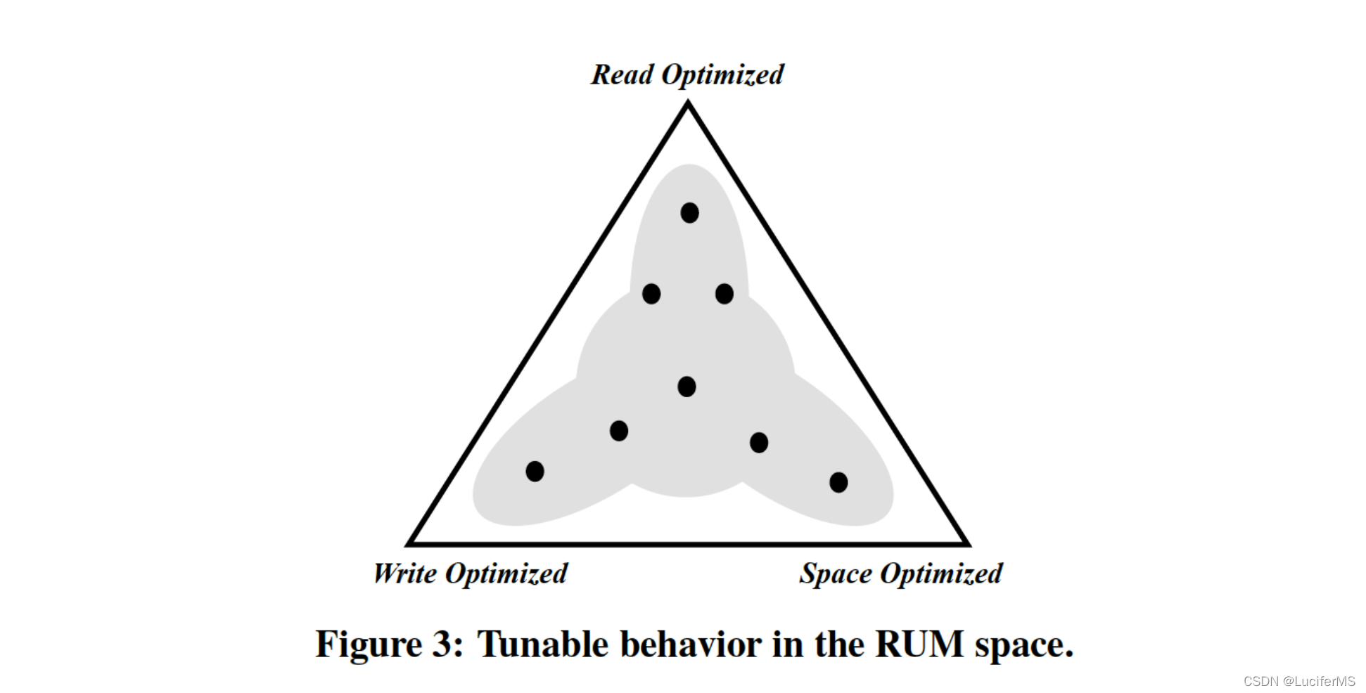 可调RUM平衡。 使用上述分类和分析,我们可以根据应用需求和硬件特性,做出有根据的决定应该使用哪种访问方法,有效地创建一个强大的访问方法向导。 除此之外,我们还研究了如何构建具有可调行为的访问方法。 这种访问方法不是 RUM 空间中的单点; 相反,它们可以在设计空间的一个区域内移动。