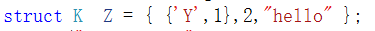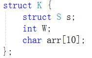 结构体K中嵌套了结构体类型struct S的结构体成员变量,以及类型为整形的成员W,10个元素的字符数组成员arr,这种情况下对结构体成员赋值也是一样的方法。