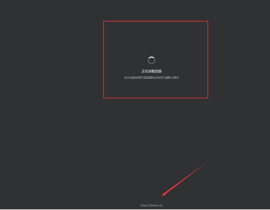在页面加载过程中,会出现以下的加载页面,和最下方的https://bladex.vip,此时我们就可以将这个地址放到fofa上去扩大资产