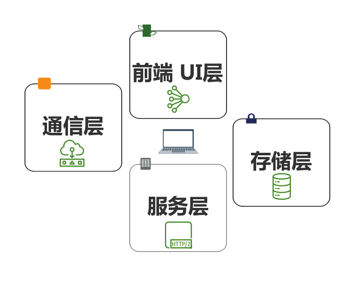 基础扎实,需要的是对前端相关领域都有一些基础性的了解,了解各项技术的应用场景和优劣选择。对于技术人员来说,理解***前端UI层、通信层、服务层和存储层***的层次结构和关系,才是最初应该掌握的基础。