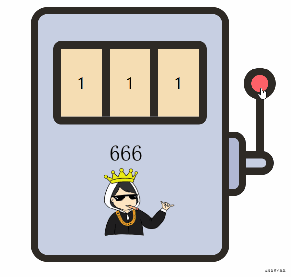 这个动画还是挺有意思的,但是小编第一个反应这要是哪一天某位ui姐姐或产品姐姐给小编提了这样子的需求,那小编岂不是当场要自闭?我本着自己的好奇心,实现了一个简易版的老虎机: