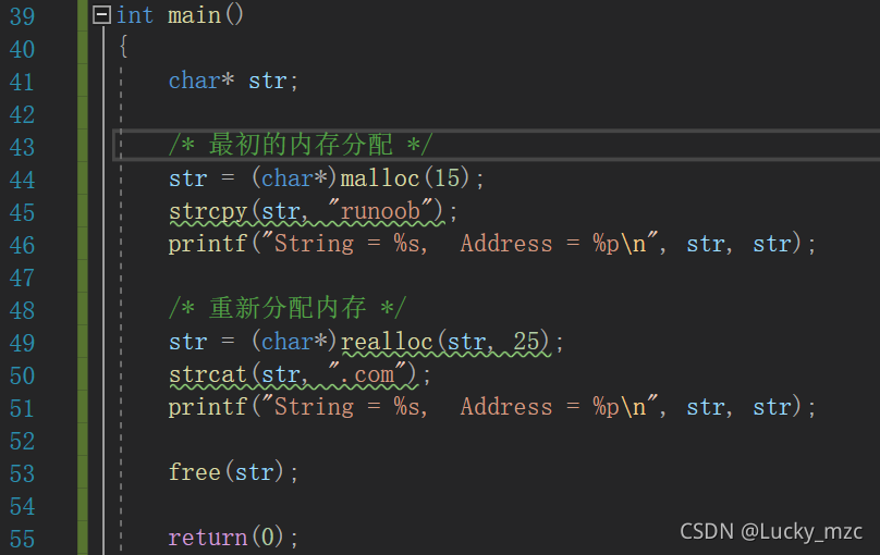 num:对象个数,size:对象占据的内存字节数,相较于malloc函数,calloc函数会自动将内存初始化为0;