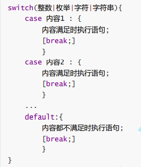 根据 switch 中值的不同, 会执行对应的 case 语句,遇到 break 就会结束该 case 语句。