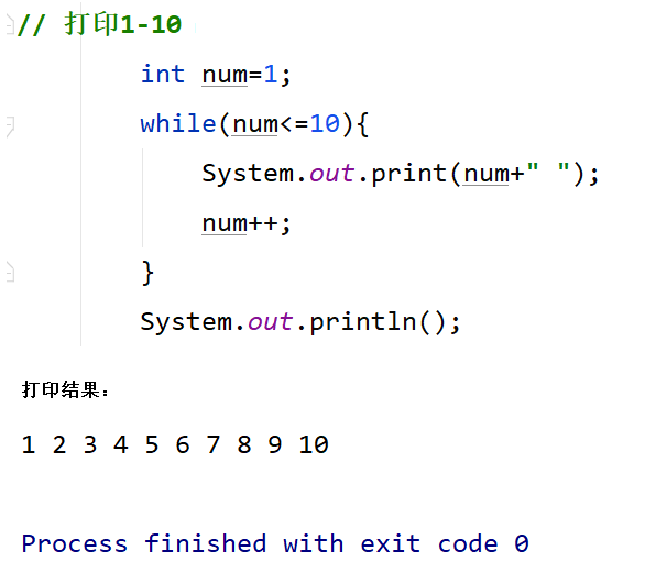 循环条件为 true, 则执行循环语句; 否则结束循环。