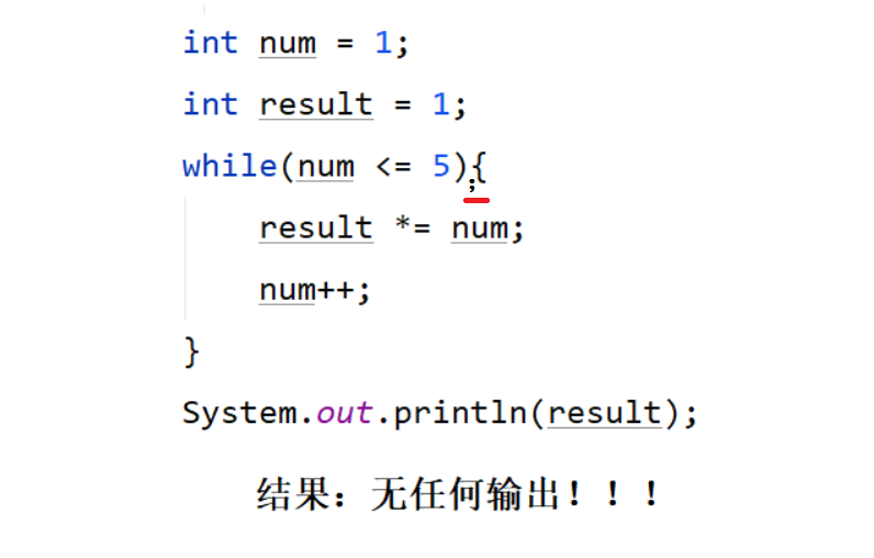 3. 和 if 类似, while 后面不要多写 分号, 否则可能导致循环不能正确执行。