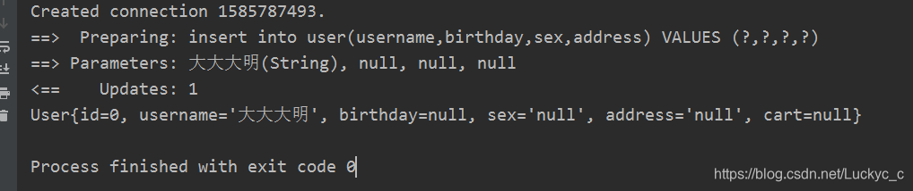 insert into user(username,birthday,sex,address) VALUES (#{username},#{birthday},#{sex},#{address})