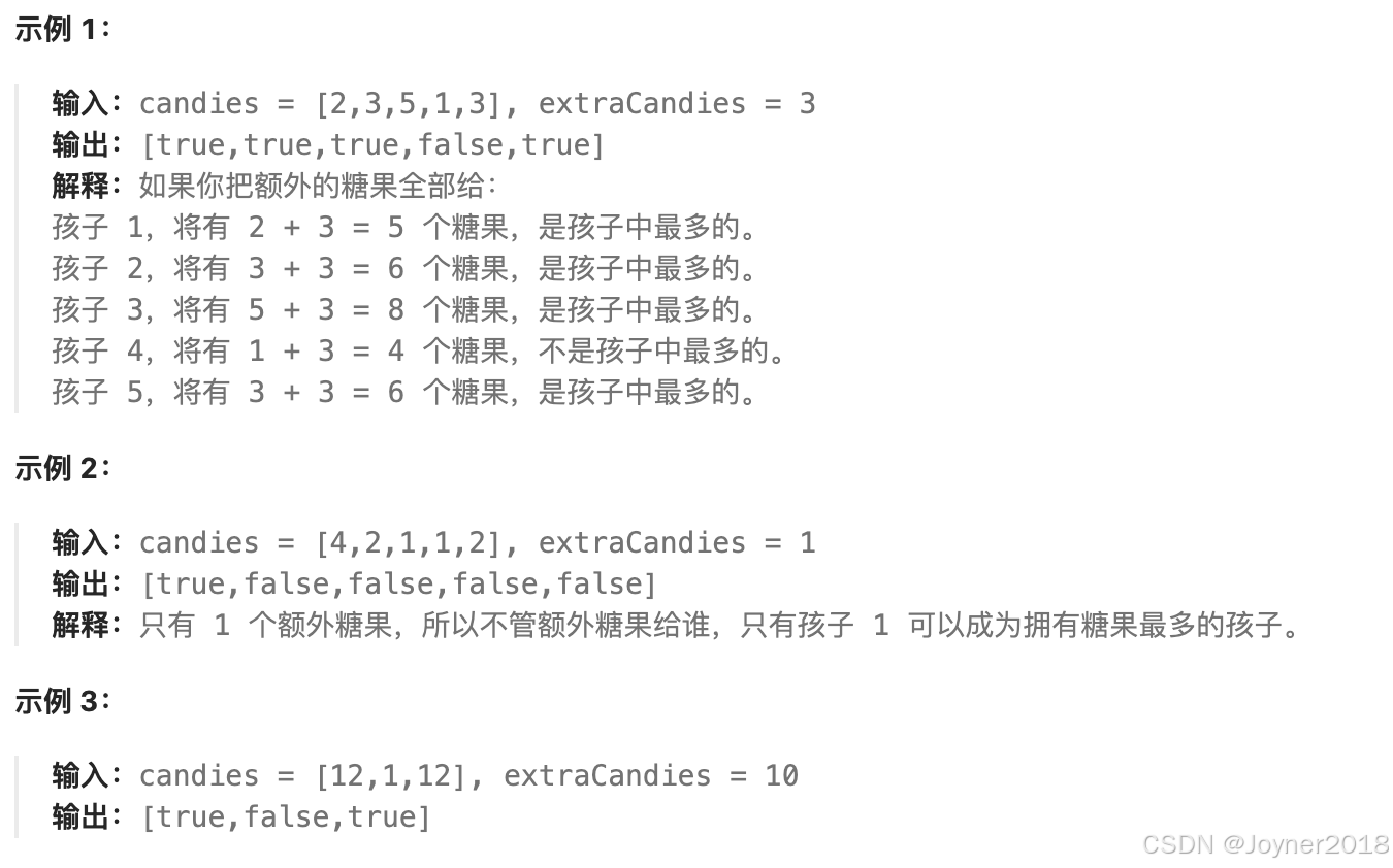 candies数组,判断如果给当前孩子分配extraCandies之后,他的糖果数是否大于等于max_candies。 - 如果是,则结果为