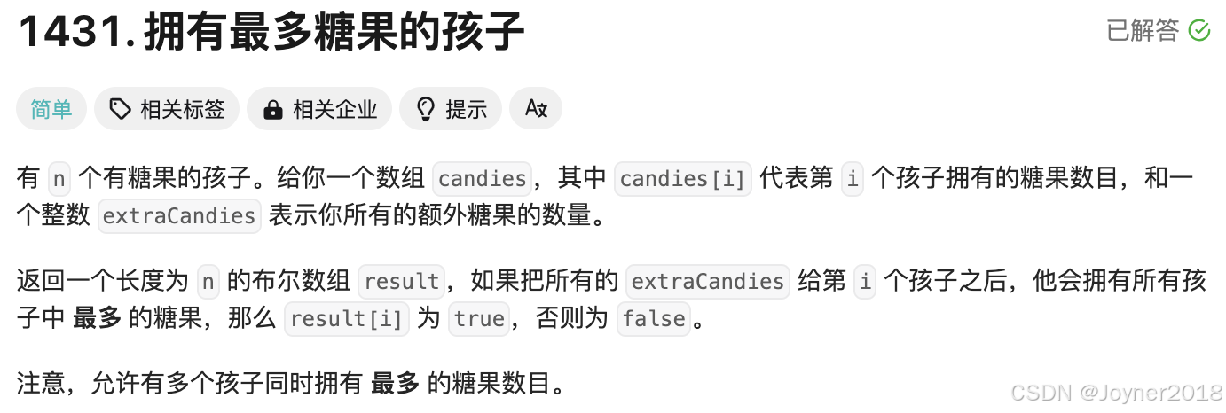1431. 拥有最多糖果的孩子 - 力扣(LeetCode)