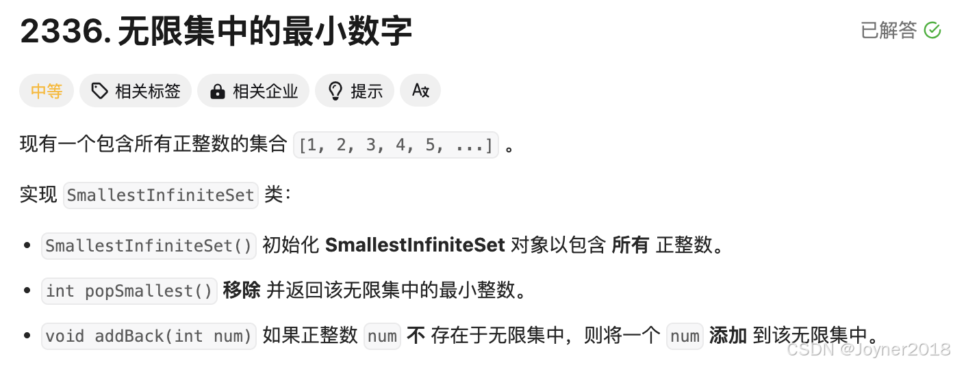 2336. 无限集中的最小数字 - 力扣(LeetCode)