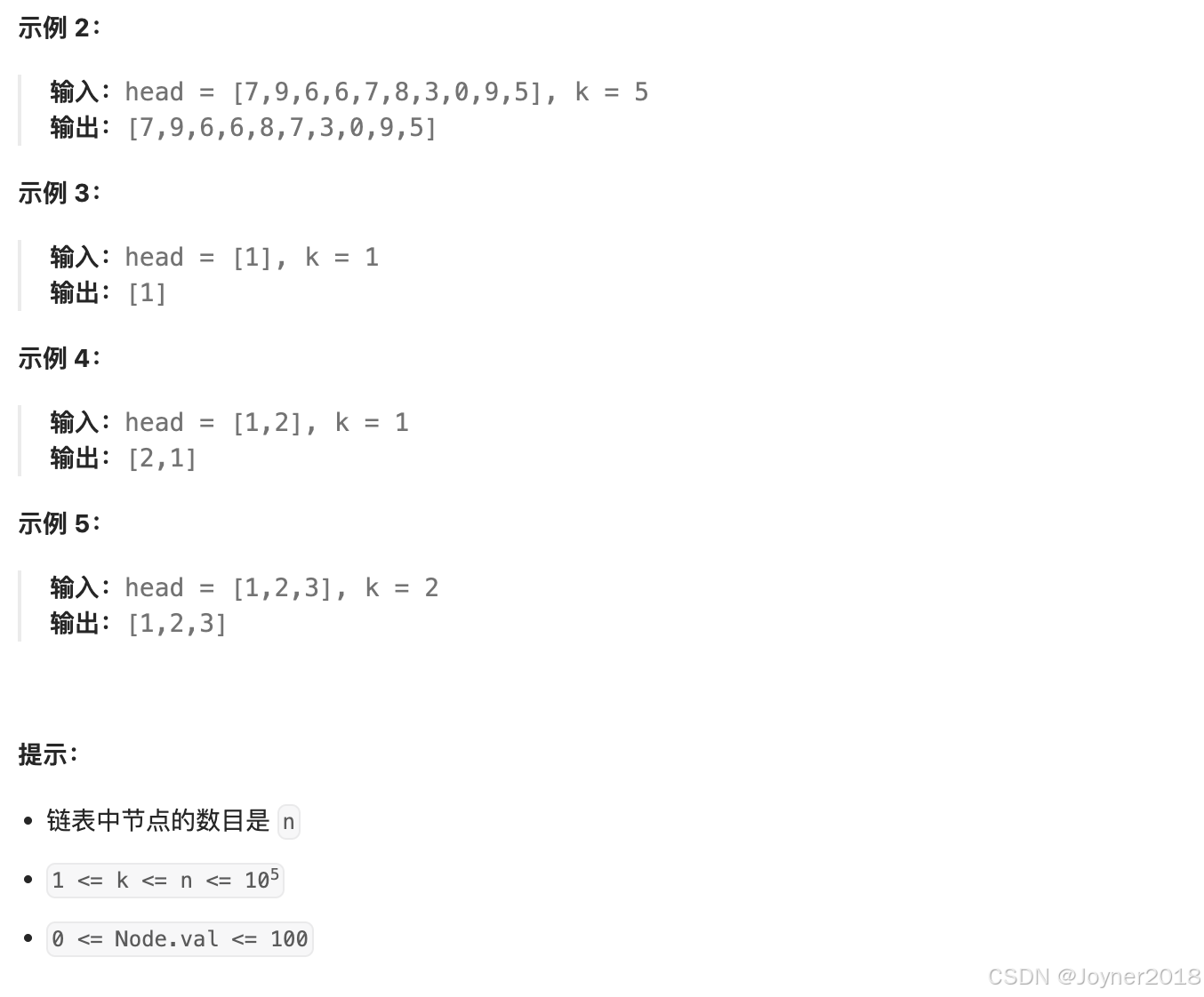 fast先走 k−1 步,slow指向头节点,此时slow就是正数第 k 个节点。 - 找到倒数第 k 个节点:继续让