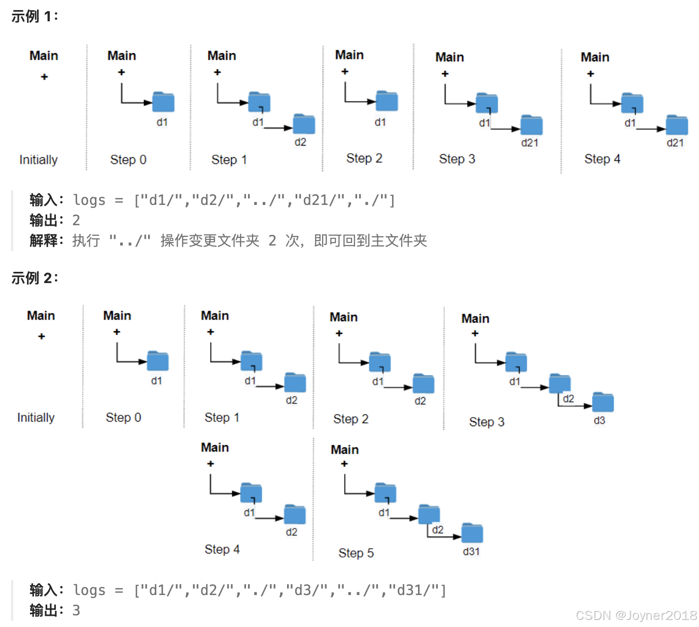 最终 depth 值就是返回主文件夹所需的最小步数。代码实现如下: