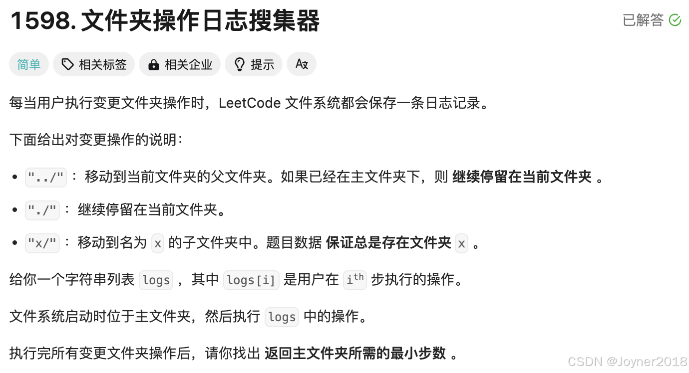 1598. 文件夹操作日志搜集器 - 力扣(LeetCode)