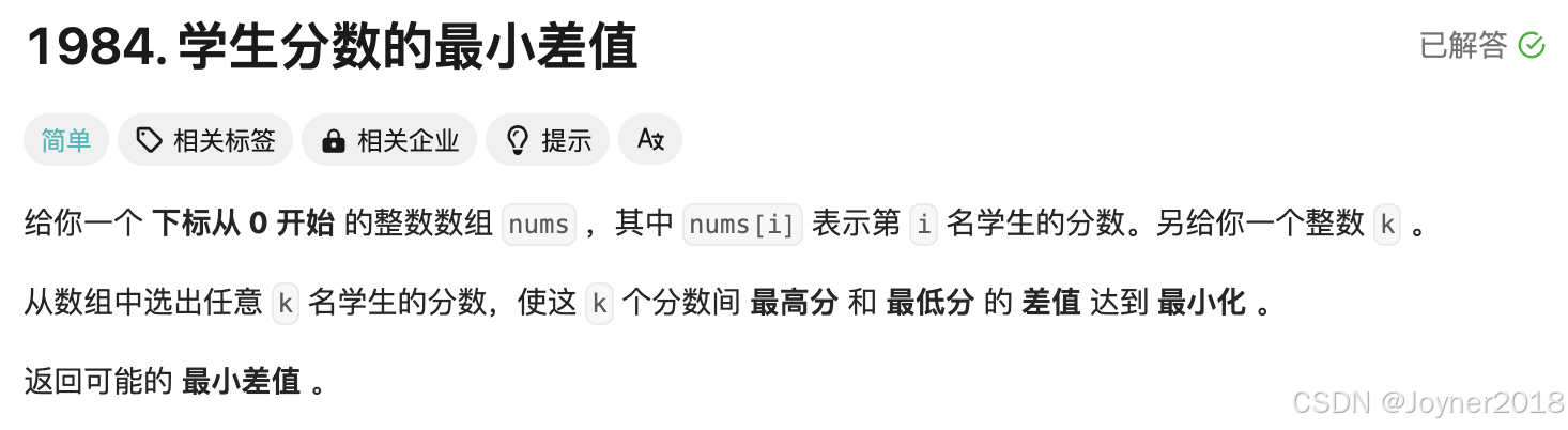 1984. 学生分数的最小差值 - 力扣(LeetCode)