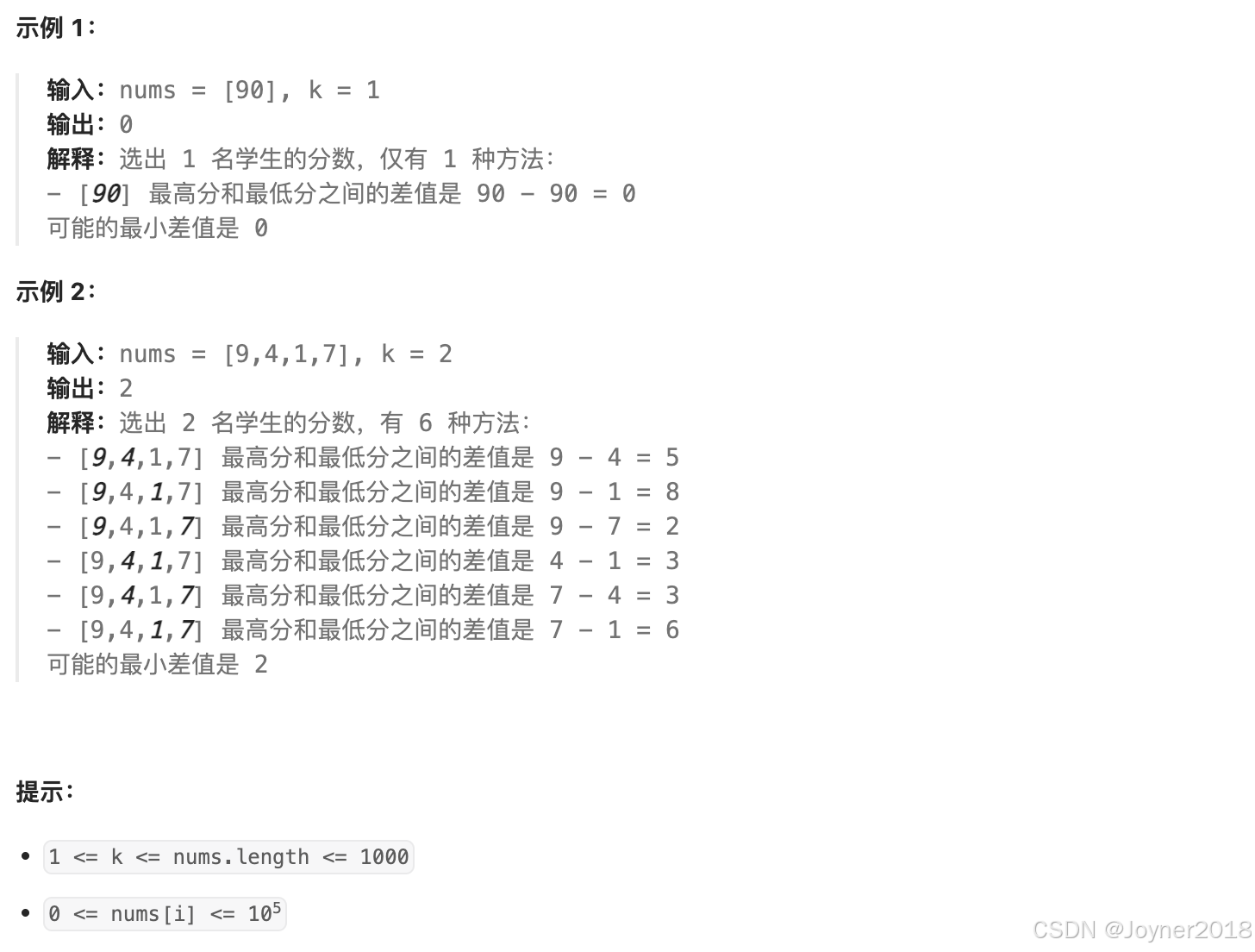 return 0 # 只选一个学生,差值必然是 0