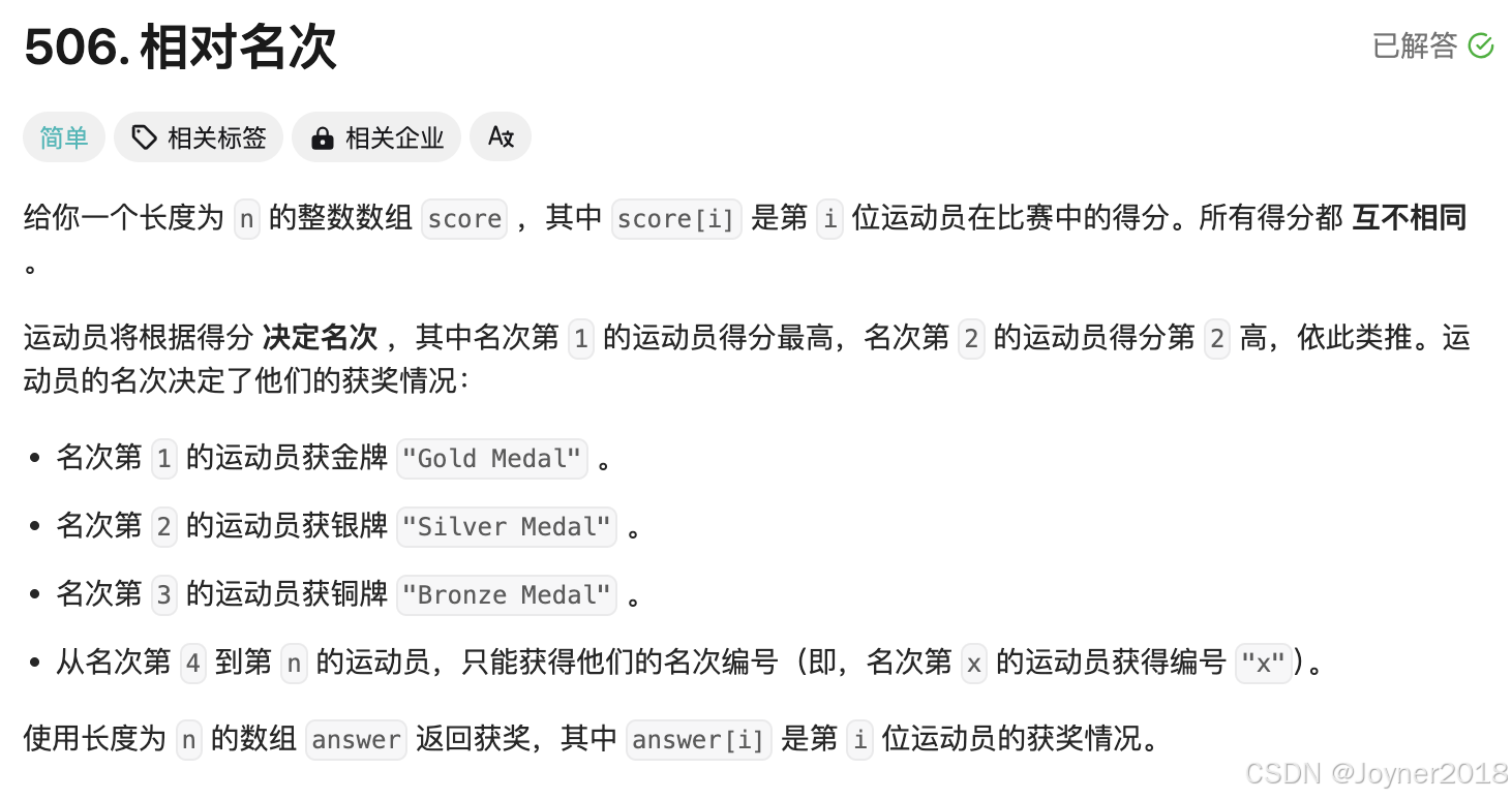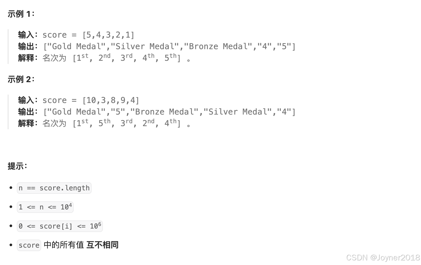 dict存储分数到排名的映射。 - 处理前三名:将前三名替换为金牌、银牌和铜牌。