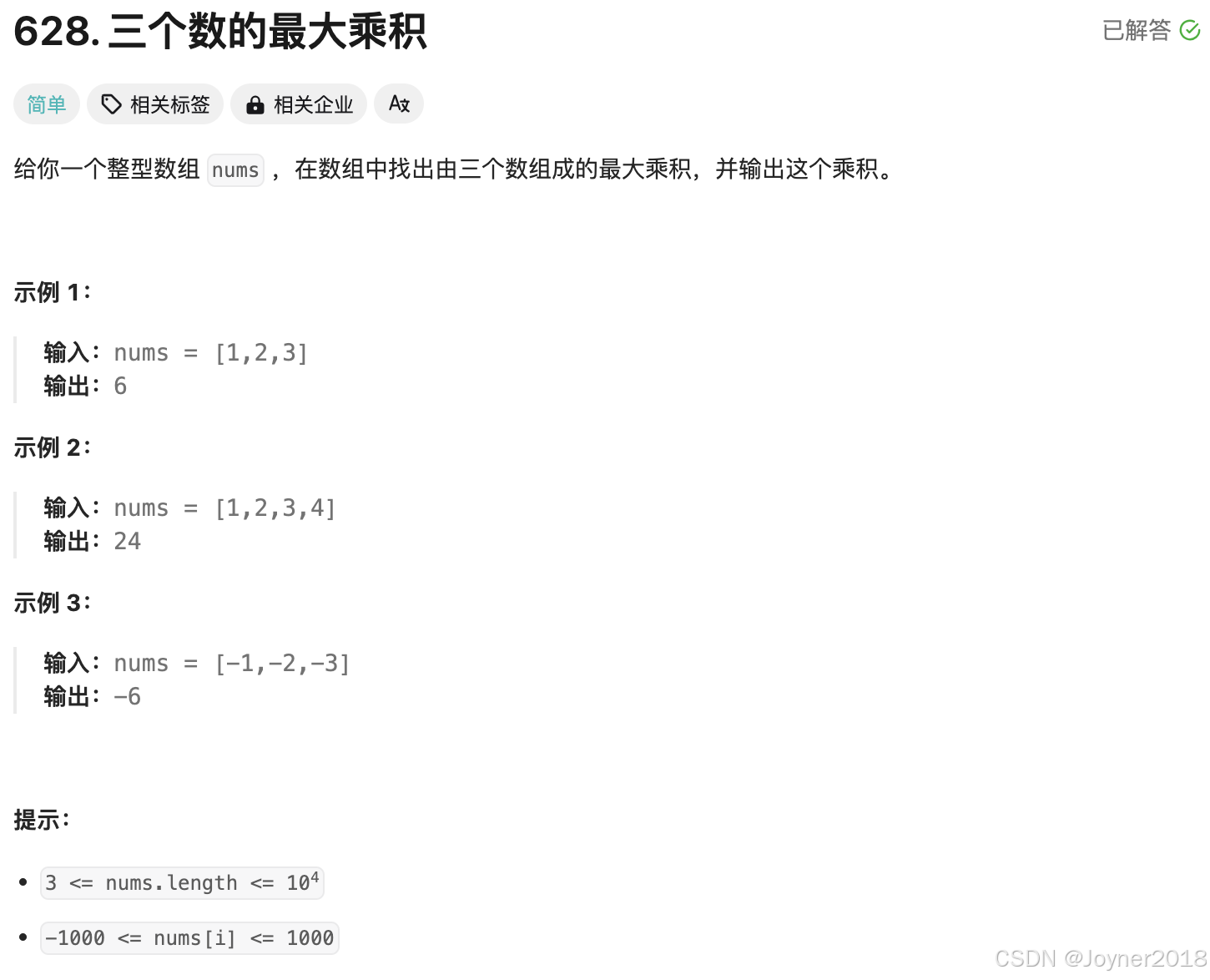 print(maximumProduct(nums)) # 输出 300